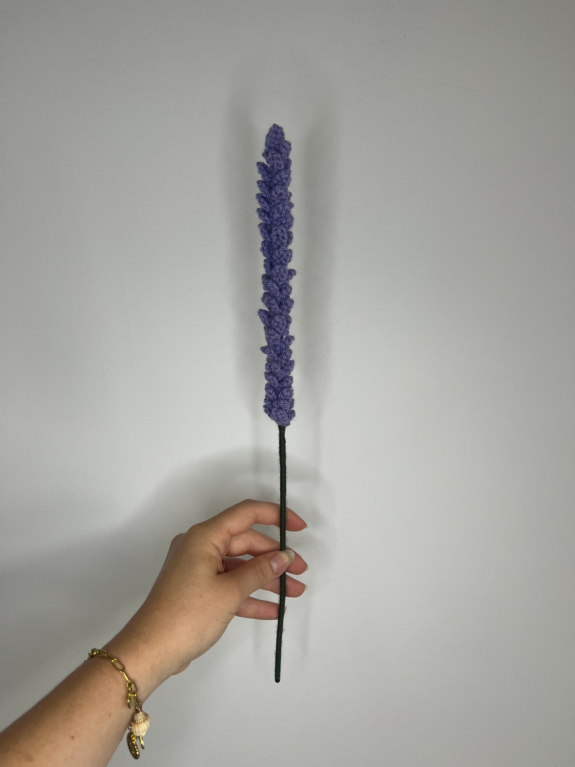 Cette reproduction fidèle d'une tige de lavande capture toute la beauté et l'élégance de cette fleur emblématique de Provence. Chaque petite fleur violette est minutieusement crochetée pour créer un rendu d'un réalisme saisissant.